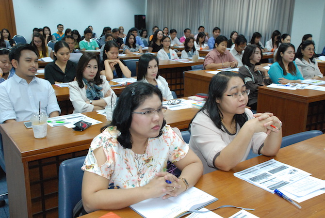 ฝ่ายสิทธิประโยชน์และสวัสดิการร่วมกับฝ่ายวิชาการสายสนับสนุนของสภาคณาจารย์และพนักงานได้จัดให้มีการอบรมเรื่อง “การเตรียมความพร้อมการเข้าสู่ตำแหน่งที่สูงขึ้นของสายสนับสนุนภายใต้ระเบียบสถาบันฯ” เมื่อวันที่ ๑๙ พฤศจิกายน ๒๕๕๗ เวลา ๙.๐๐ – ๑๒.๐๐ น. ณ ห้องประชุม ๗๐๑ ชั้น ๗ สำนักงานอธิการบดี เพื่อเป็นการกระตุ้นให้บุคลากรได้มีการพัฒนาตนเองและองค์กรอย่างต่อเนื่อง อีกทั้งยังเป็นส่งเสริมและสนับสนุนให้บุคลากรสายสนับสนุนวิชาการได้มีความรู้และความเข้าใจในแนวทางการเตรียมความพร้อมในการขอตำแหน่งที่สูงขึ้นโดยเฉพาะอย่างยิ่งผู้ที่อยู่ในเกณฑ์ที่จะต้องขอกำหนดตำแหน่ง โดยมี คุณจรงค์ศักดิ์ พุมนวน ประธานฝ่ายสิทธิประโยชน์และสวัสดิการ สภาคณาจารย์และพนักงาน นักวิทยาศาสตร์ ชำนาญการขั้นสูง เป็นวิทยากร กิจกรรมครั้งนี้มีผู้เข้าร่วมอบรมซึ่งมาจากส่วนงานต่าง ๆ จำนวน ๑๒๒ คน (ดูคลิปวิดีโอการอบรมได้ที่ คลินิกสภา >) |